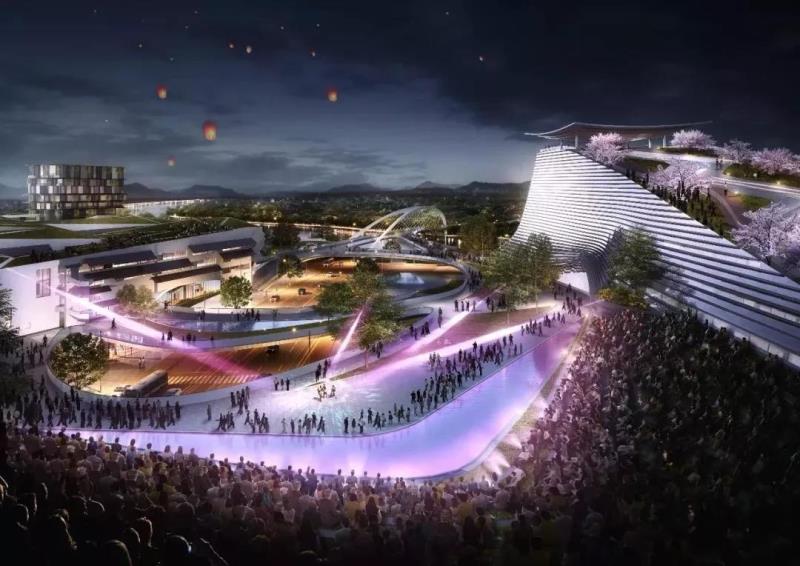 外觀既保留了傳統(tǒng)東方建筑“白墻黛瓦”、“前坊”、“望樓”等元素,又融入強(qiáng)烈未來(lái)感的建筑特征。
