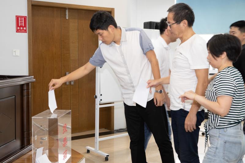 隨后,以無記名投票方式,選舉產(chǎn)生了第一屆工會委員會委員,王堅(jiān)威當(dāng)選工會主席。