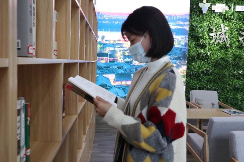 疫情期間,進(jìn)入書(shū)屋看書(shū)的員工們都得佩戴好口罩,保持合適的距離進(jìn)行閱讀。
