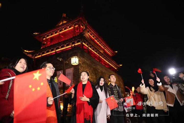 在這個(gè)一元復(fù)始,大地回春的節(jié)日夜晚。水亭門城樓外廣場(chǎng)上,歌聲與炫麗的5D光影大秀交相輝映,如一段嘹亮的號(hào)角,鼓舞著衢州人斗志昂揚(yáng)地踏上2019年的逐夢(mèng)征程。